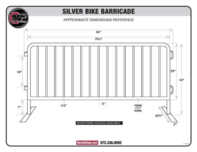 * Please call us for any questions on our bike barricades 6.5 ft rentals in Dallas, Fort Worth, Plano, Garland, Carrollton, Arlington TX, and DFW Metro Area.