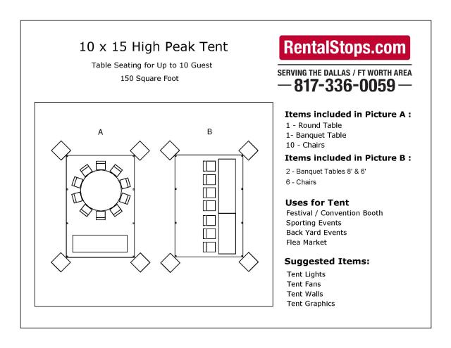 * Please call us for any questions on our 10 foot x 15 foot marquee tent rentals in Dallas, Fort Worth, Plano, Garland, Carrollton, Arlington TX, and DFW Metro Area.