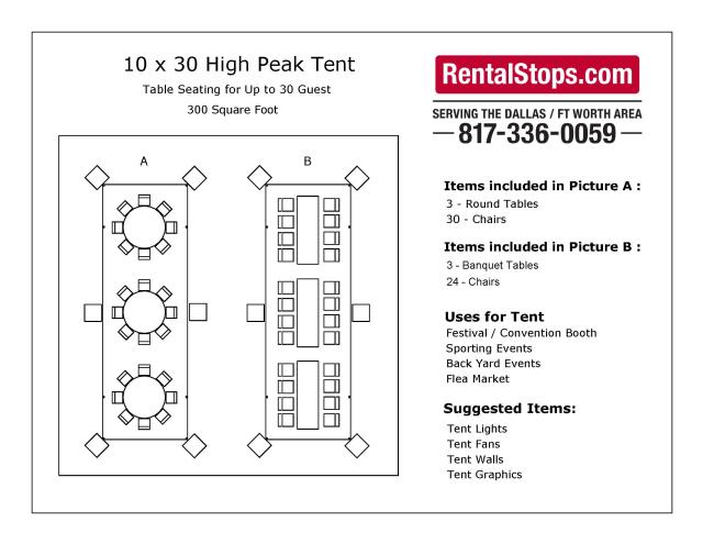 * Please call us for any questions on our 10 foot x 30 foot hybrid marquee tent rentals in Dallas, Fort Worth, Plano, Garland, Carrollton, Arlington TX, and DFW Metro Area.