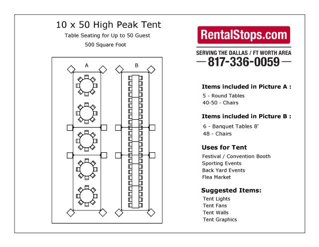 * Please call us for any questions on our 10 foot x 50 foot marquee tent rentals in Dallas, Fort Worth, Plano, Garland, Carrollton, Arlington TX, and DFW Metro Area.