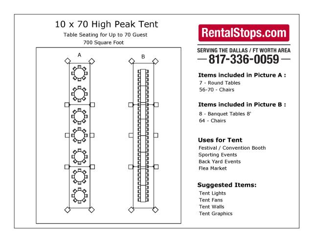 * Please call us for any questions on our 10 foot x 70 foot marquee tent rentals in Dallas, Fort Worth, Plano, Garland, Carrollton, Arlington TX, and DFW Metro Area.