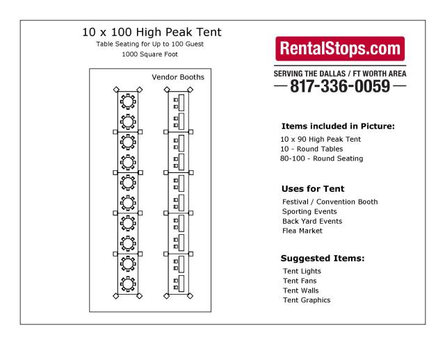 * Please call us for any questions on our 10 foot x 100 foot marquee tent rentals in Dallas, Fort Worth, Plano, Garland, Carrollton, Arlington TX, and DFW Metro Area.