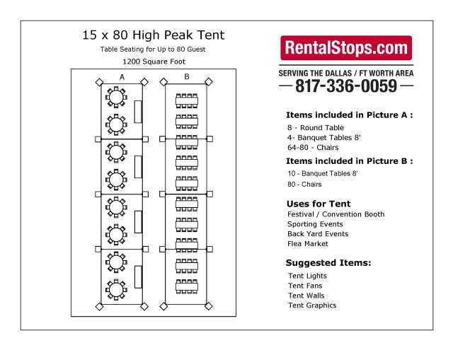 * Please call us for any questions on our 15 foot x 80 foot marquee tent rentals in Dallas, Fort Worth, Plano, Garland, Carrollton, Arlington TX, and DFW Metro Area.